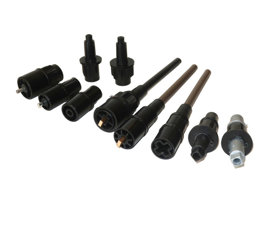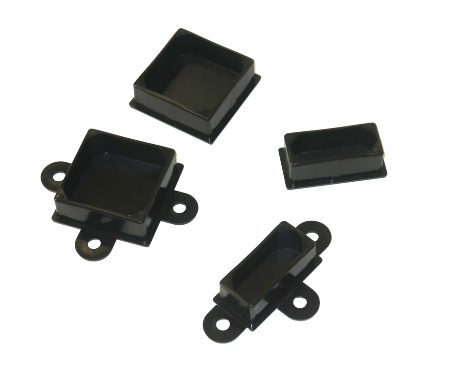 Linea di tappi per tubolari 50x50 mm e 25x50 mm con e senza alette per il fissaggio.