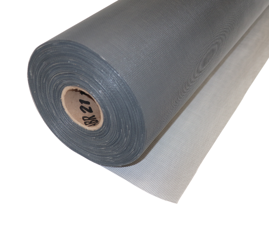 Gamma di rotoli di rete in fibra di vetro, alluminio e acciaio inox di varie altezze.