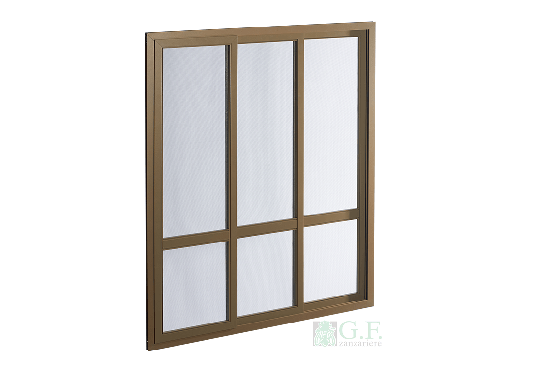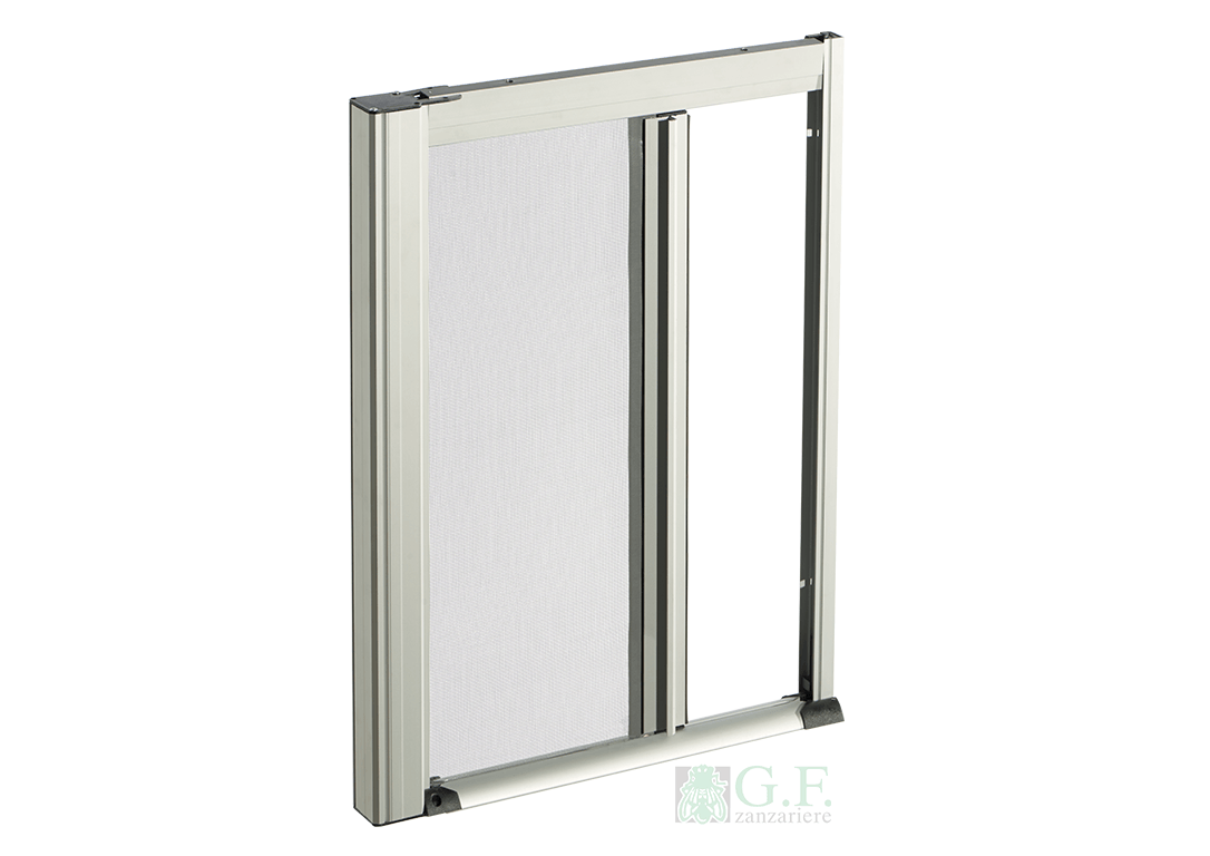 Zanzariera a scorrimento orizzontale composta da 2 pannello scorrevoli istallato su binario a tre vie.