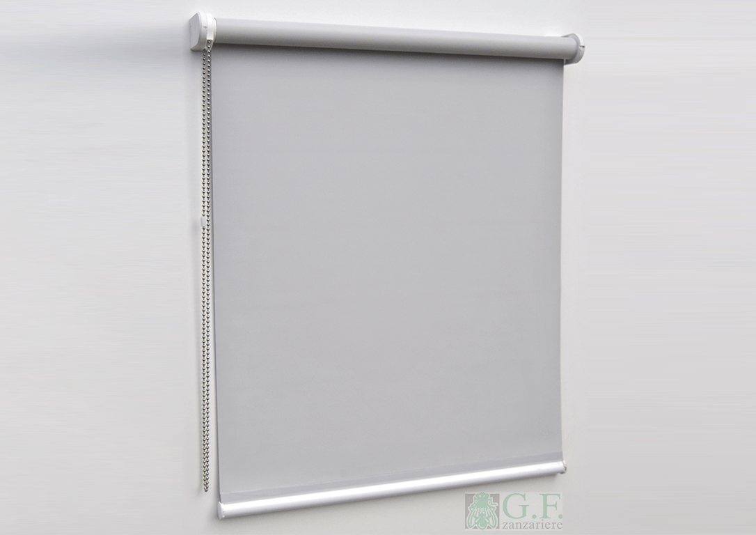 Zanzariera a scorrimento verticale con movimento di riavvolgimento del telo tramite comando a catenella.