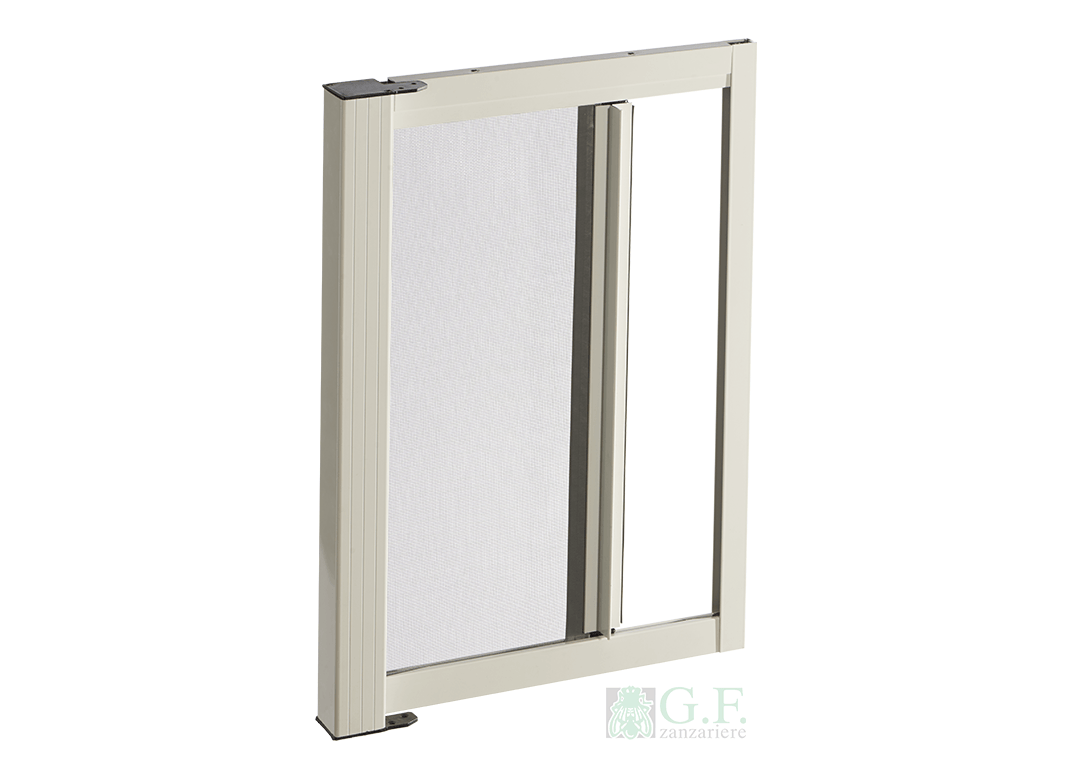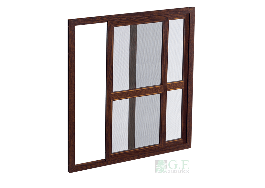 Zanzariera a scorrimento orizzontale composta da 2 pannello scorrevoli istallato su binario a tre vie.